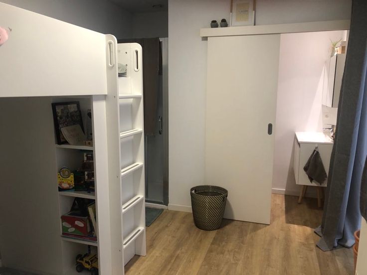 1 grote plaats die dienst kan doen als slaapkamer, gevolgd door een open keuken met een ruime eetplaats met aansluitende een ruime salon met toegang tot het terras. met op het gelijkvloers een kamer met eigen douche en toilet alsook een wasbak. met een vaste trap komt u in de 2de kamer met douche en apparte toilet. Ook een een individuele kelder behoort tot het appartement.