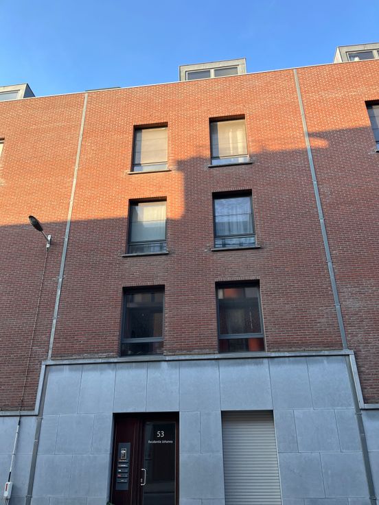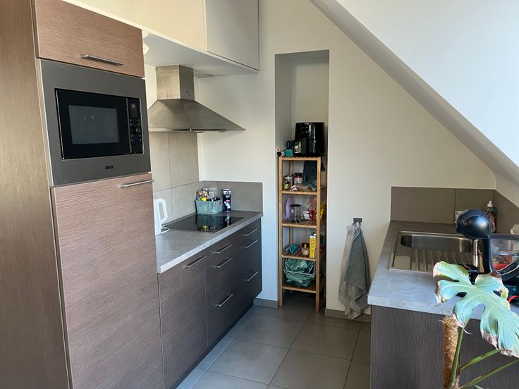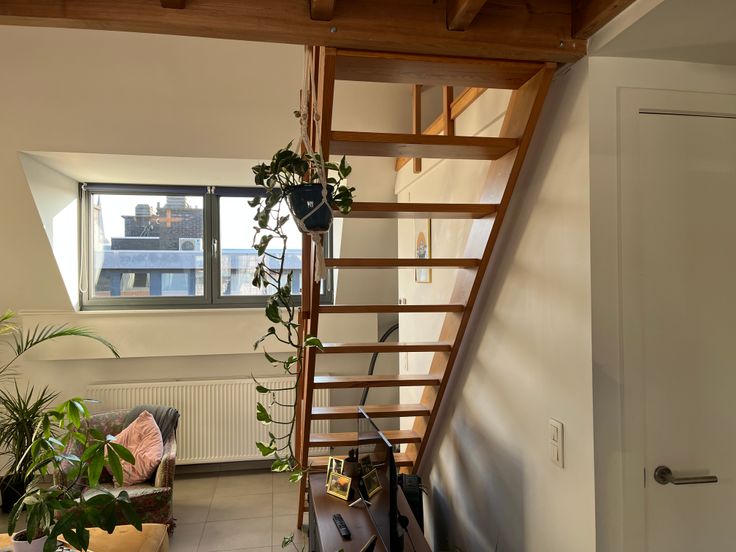 Dit is een gezellig appartement met veel lichtinval gelegen op de 4de en hoogste verdieping. De keuken, eet- en leefruimte vormen één groot geheel. De slaapkamer ligt op een mezzanine waardoor een gevoel van ruimte ontstaat. Er is een apart toilet en badkamer met douche. Aansluitingen voor wasmachine en/of droogkast zijn aanwezig. Een zeer groot en zonnig terras is een extra troef ! In de garage is nog een aparte afgesloten berging. De Dageraadplaats bevindt zich op wandelafstand. Beschikbaar vanaf 01/05.