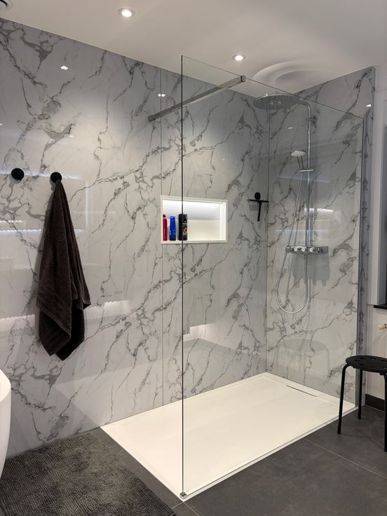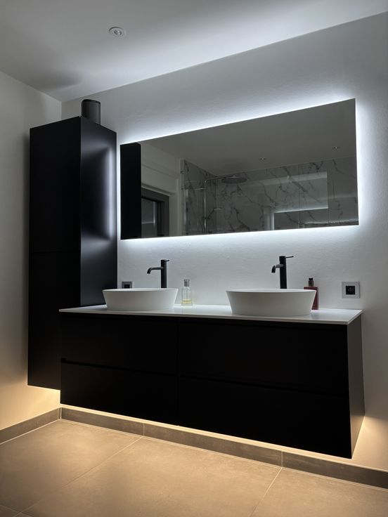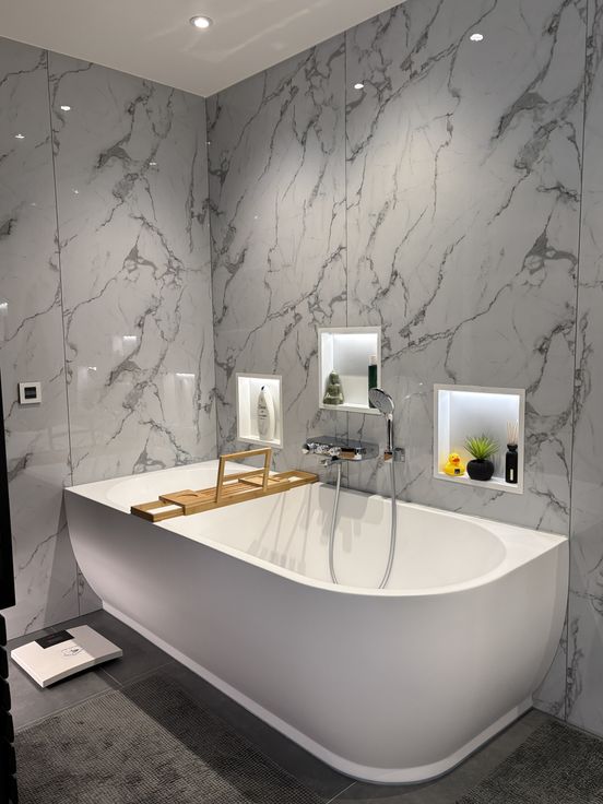 - badkamer met bad, inloopdouche en dubbele wastafel