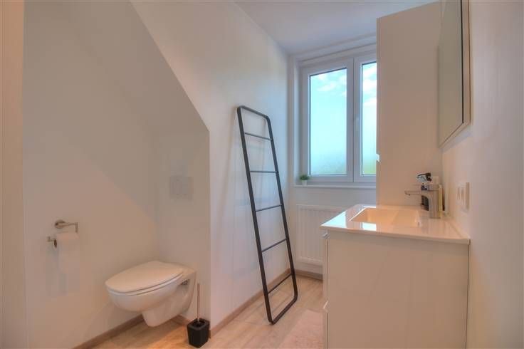 Een zeer recent gebouwde woning met diepe tuin gelegen tussen Eernegem en Gistel. Deze verrassende woning is energiezuinig en afgewerkt met hoogwaardig materialen. U komt binnen in een ruime hall met toilet. De lichtrijke leefruimte loopt door van voor naar achteren en heeft een zeer mooi groot schuifraam die een prachtig uitzicht biedt op de tuin en de achterliggende weides. De volledig ingerichte open keuken heeft alle comfort en talrijke kasten. Naast de keuken bevindt zich de berging met aansluiting voor wasmachine en droogkast. De eerste verdieping is bereikbaar via de open trap. Er is een grote en een kleinere slaapkamer en een moderne badkamer met inloopdouche en tweede toilet. Mis deze kans niet en plan vandaag nog uw bezichtiging!
