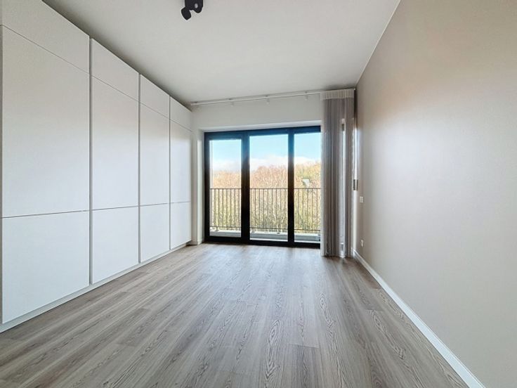 L’appartement comprend également deux chambres, dont une avec un grand dressing et un balcon.