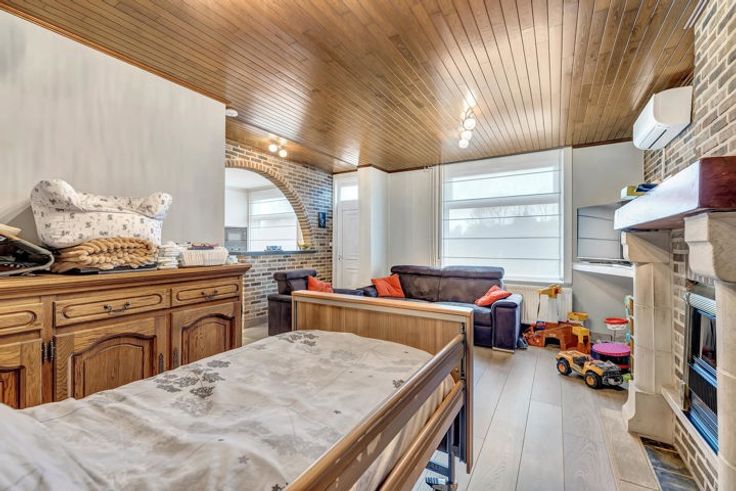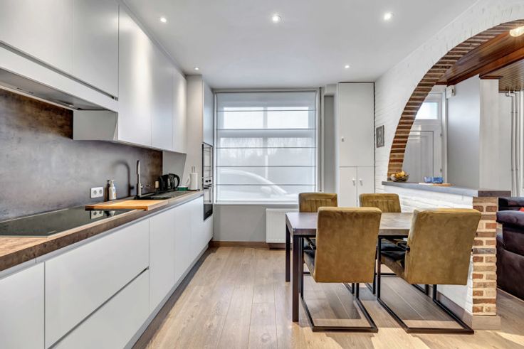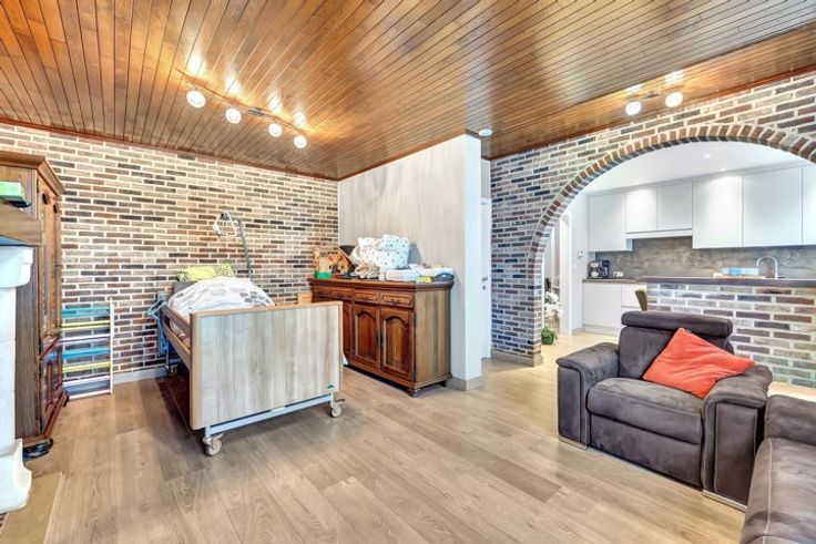 Voor meer info of een bezoek, bel 054 69 39 34 - In een doodlopende straat te Denderhoutem biedt Topo-Immo deze instapklare en energetische open bebouwing aan. Het pand werd in de loop der tijd volledig verbouwd en verkeert dus in uitstekende staat. Ideaal voor investeerders, jonge koppels of starters. Het gelijkvloers bestaat uit een living met salon en eetplaats, een vernieuwde keuken (+/- 2022) met eetplaats, een overloop, berging, toilet en garage. Het verdiep omvat een nachthal, drie ruime slaapkamers en een badkamer. Zolder aanwezig met uitvaltrap waar er nog extra ruimte kan gecreëerd worden. Tevens beschikt men over 3 autostaanplaatsen en aan de overzijde van de straat een volledig aangelegde tuin met tuinberging waar men tot rust komt. CV op stookolie - Buitenschrijnwerk in PVC met dubbele beglazing - Vernieuwd dak met isolatie (2007) - EPC B - Airco - Waterverzachter.