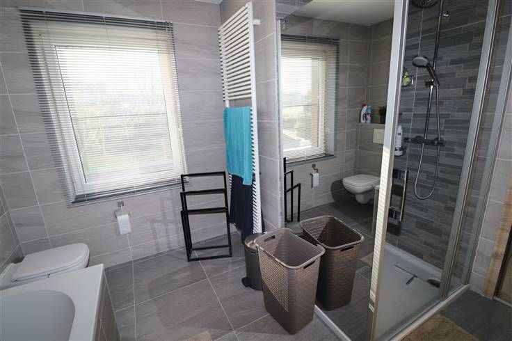 Sorry er is geen nederlandse vertaling beschikbaar. LAISSEZ-VOUS SÉDUIRE PAR CETTE SPACIEUSE ET AGRÉABLE MAISON D’HABITATION RÉCENTE, composée d' un hall d'entrée, bureau, salon, salle à manger, cuisine hyper équipée et meublée (table cuisson centrale à induction, hotte, four, four-micro-onde, évier, frigo, congélateur), buanderie, toilette et chaufferie au rez-de-chaussée. Hall de nuit avec coin bureau, 3 chambres, dressing, salle de bains (baignoire, douche, double éviers et toilette) au 1er étage. Au 2ème étage (accessibles par trappe et escalier escamotable) : hall de nuit, 2 chambres. Equipée d’un chauffage central sol (rez) au mazout, châssis ‘PVC’ double vitrage, toiture tuiles (isolée), électricité conforme, citerne eau de pluie, 30 panneaux photovoltaïques, VMC, système d’alarme, ...