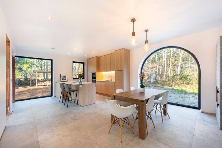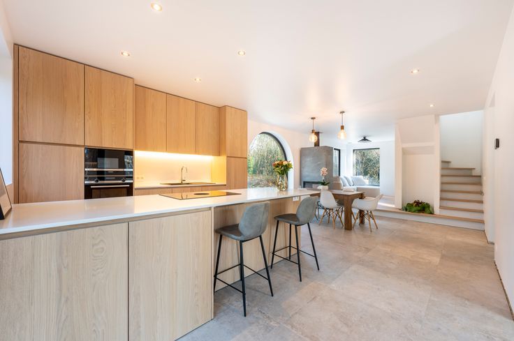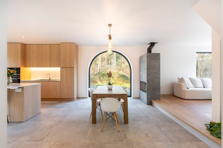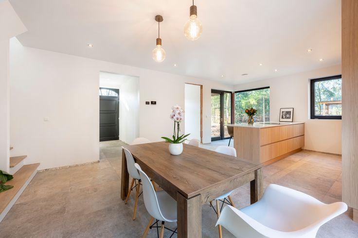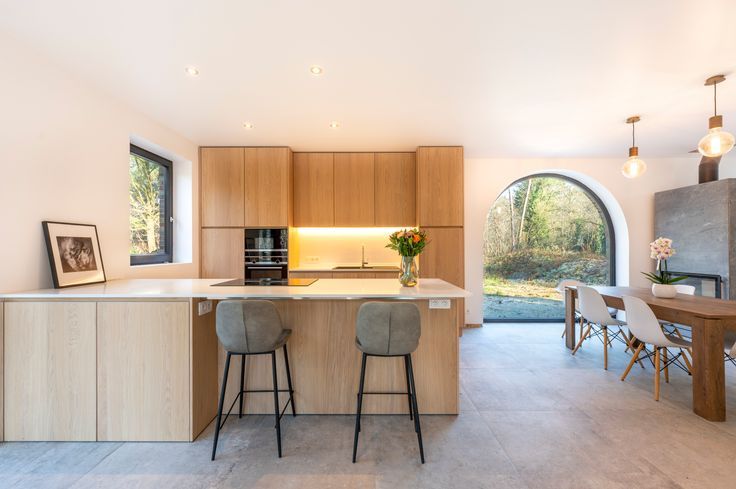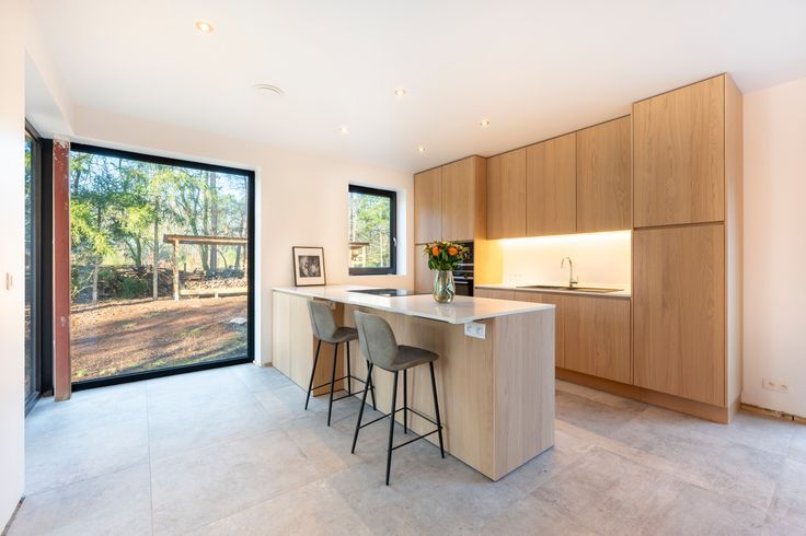 Binnen vindt u een lichtrijke, open leefruimte. De volledig uitgeruste keuken met kookeiland is een echte eyecatcher, terwijl de gezellige zithoek rond de moderne speksteenkachel dé plek is voor lange gezellige winteravonden. Verder op het gelijkvloers een handige berging en een apart bureau – ideaal voor thuiswerkers of als extra hobbyruimte.