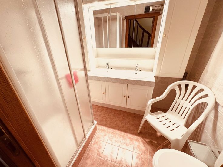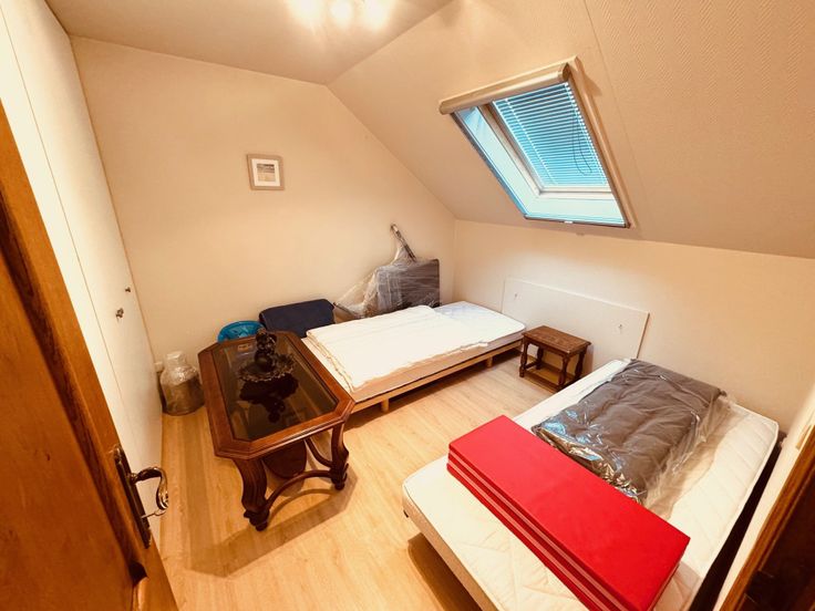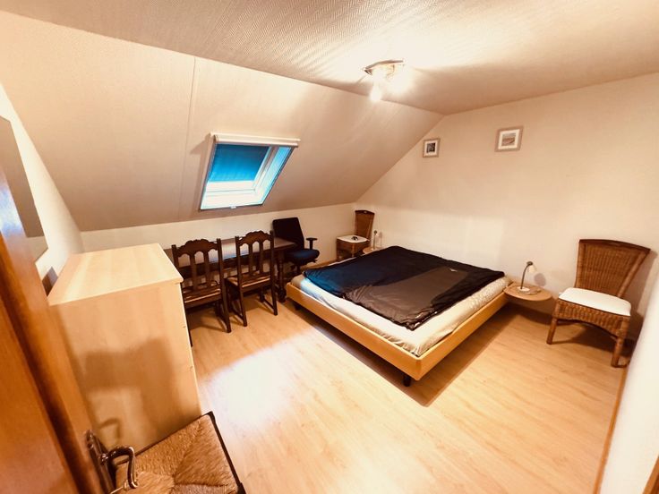 Bestaat uit: inkom, woonkamer met openkeuken, berging onder de trap, badkamer met douche en toilet, 2 slaapkamers, terras, aparte berging en alg fietsenberging in het apart bijgebouw, tuin en een privéparking. Domicilie niet mogelijk.