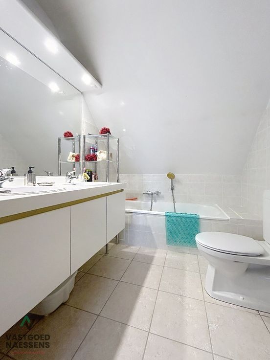 3DE verdieping: ruime woonkamer met toegang tot terras, open keuken met ontbijthoek, berging met aansluiting wasmachine, toilet en de eerste slaapkamer / bureauruimte. Via de trap komt men op de vierde verdieping waar u de 2 slaapkamers met ensuite dressing en de badkamer terugvindt. Er is tevens een fietsenberging in het gebouw.