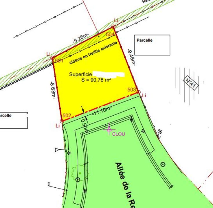 Parcelle de terre d'une superficie d'après mesure de 90,78m² située Allée de la Relevée à Nivelles, entre les numéros 41 et 43