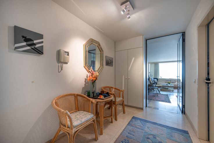 Gemeubeld appartement op het 8st verdiep met schitterend frontaal zeezicht. Indeling : inkomhall, apart toilet, ruime living uitgevend op het terras, eetkamer, halfopen keuken, masterkamer met aansluitende badkamer , slaapkamer 2 met douchekamer. Dubbele garagebox in de residentie te huur aan 300 EUR/maand. HUURVOORWAARDEN: - 3 maanden huurwaarborg - verzekering - enkel als particulier te huren - indien tweede verblijftaks, is deze ten laste van de huurder - plaatsbeschrijving op gedeelde kost (50%-50%) - provisie van 100 EUR/maand - verbruik nutsvoorzieningen (elektriciteit, water, tv, internet, ...) komt bovenop de huurprijs en wordt bij intrede op naam van de huurder geplaatst.