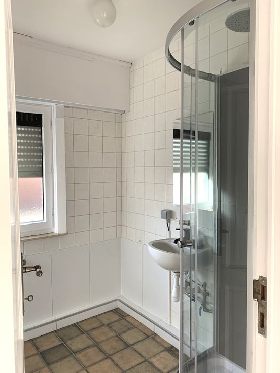 Bestaande uit: inkom, toilet, woonkamer (eet- en zithoek), keuken, badkamer met lavabo en douche, 2 slaapkamers en een garage.