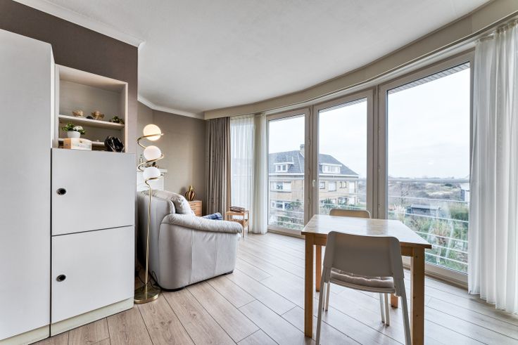Deze aantrekkelijke woning (BJ 1956 - architect Louis Legein) heeft zicht op de duinen en ligt op wandelafstand van de markt, de zeedijk en de Zeelaan. Op het gelijkvloers bevindt zich naast de ruime inkomhal ook een praktische garage. De inkomhal loopt uit in een ruime zithoek met daaraan grenzend een bureauruimte en een droge kelder. Op de eerste verdieping bevinden zich een ruime, lichtrijke living (houten vloer), een ingerichte keuken, een eetruimte, een eerste toilet en een terras met zicht op de tuin. Op de tweede verdieping zijn er 3 ruime slaapkamers, een praktisch ingerichte badkamer en een (apart) tweede toilet. De zolderverdieping is bereikbaar via een vaste trap en kan dienen als atelier of ruime bergruimte. Zuid gerichte en sfeervolle tuin met 2 terrassen, die ondanks de centrale ligging veel privacy biedt. Het dak van de woning werd gerenoveerd in 2009 en in 2014 werd nieuwe dubbele beglazing geplaatst. De woning wordt verwarmd met gaskachels en heeft door het gunstige EPC C geen renovatieplicht! Bezoeken op afspraak kan op zaterdag 15 februari en de bezoekdag staat op zaterdag 1 maart gepland.