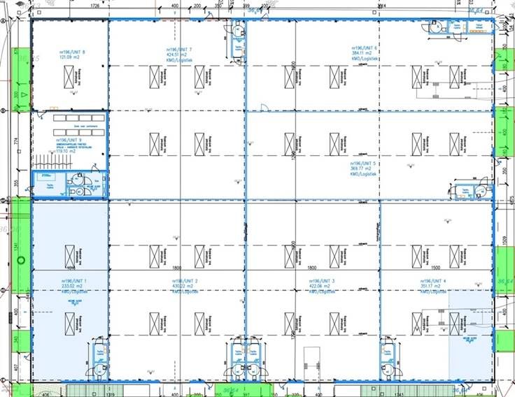 KMO-project KIEWITSTRAAT. Nieuwe kmo-units te huur tussen 350 m2 en 430 m2 (ook combineerbaar) gelegen de Kiewitstraat te Hasselt. Iedere unit heeft zijn eigen sectionale poort, raam, deur, sanitaire ruimte, lichtstraten met rookluik, brandbeveiliging, stopcontacten. In directe nabijheid van de Corda Campus, Hasselt/Genk en verbindingsweg E313/E314. Oplevering verwacht Q3 2025. Beschikbaar: Unit 2: 430 m2, Unit 3: 422m2, Unit 4: 351 m2, Unit 5: 370 m2: Unit 6: 384 m2, Unit 7: 425 m2.
