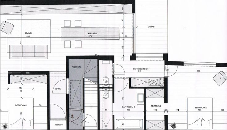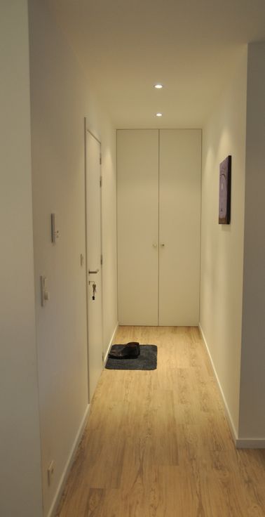 Inkomhal met ingebouwde kast/vestiaire - Living met open keuken - Aparte toilet - Badkamer met ligbad, douche, dubbele lavabo en toilet - 1 Slaapkamer of bureau met ingebouwde kasten - 1 Slaapkamer met dressing - Open berging met schuifwand voor wasmachine & droogkast - Terras - Kelder.