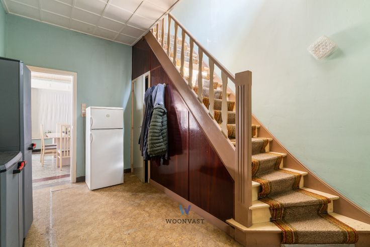 Indeling: ruime leefruimte met naastliggend een eerste (slaap)kamer dat momenteel dient als stockageruimte, de keuken met eetkamer en de badkamer. Op het verdiep vinden we nog 3 ruime slaapkamers terug wat dus voldoende ruimte biedt voor gezinnen met kinderen of voor mensen die graag een extra kamer willen hebben voor bijvoorbeeld een thuiskantoor of hobbyruimte.