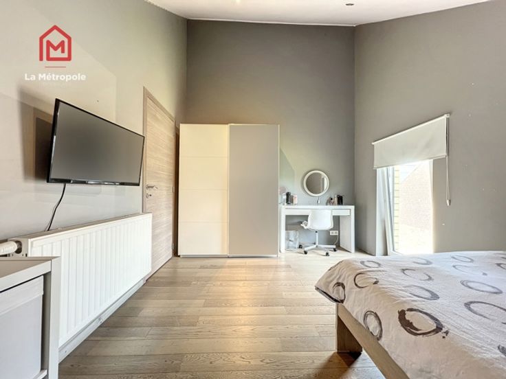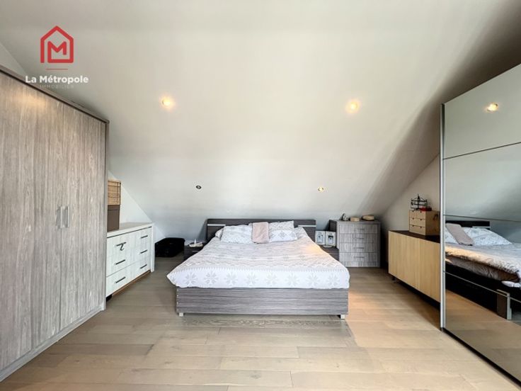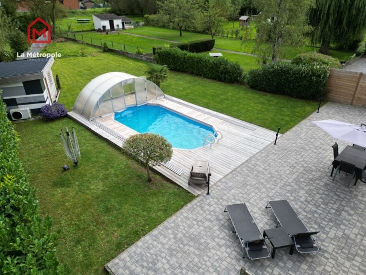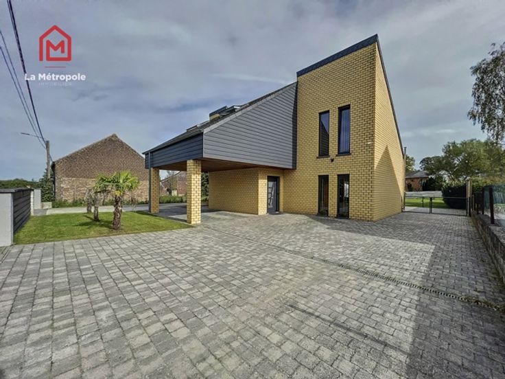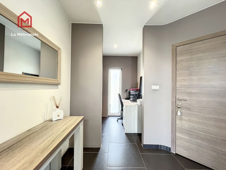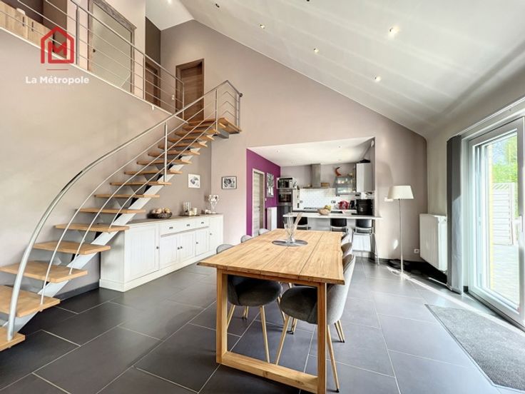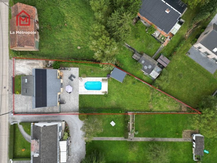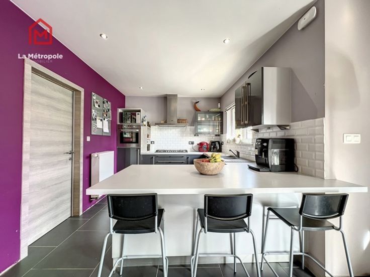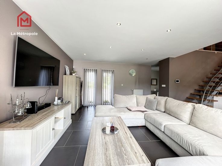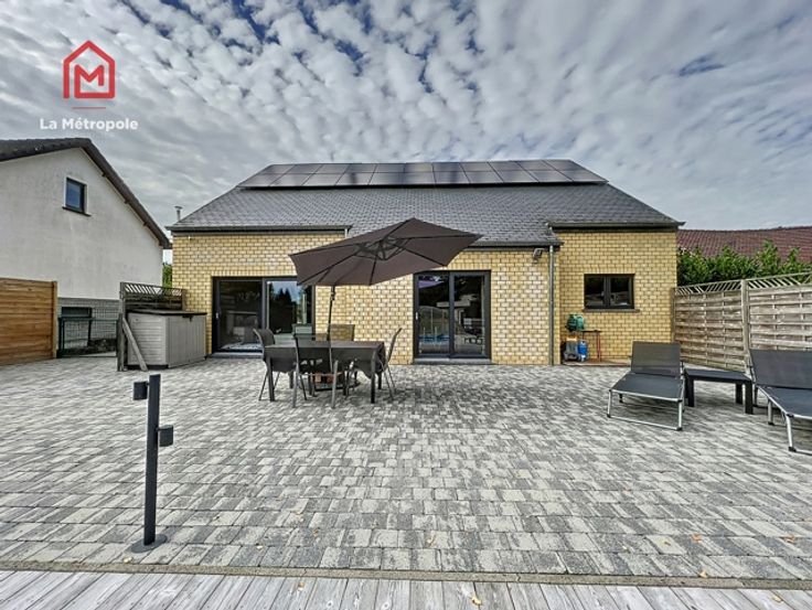 La Métropole Immobilier vous propose à la vente cette villa construite en 2010 dans la commune de Lobbes. Cette maison qui vous offrira luminosité et volumes est implantée sur une parcelle de 10 ares. Au rez, un hall d'entrée spacieux avec bureau et WC vous donnera accès au salon ouvert sur la salle à manger ainsi que sur la cuisine équipée. La cuisine donne accès sur une buanderie (évacuations pour machine à laver, onduleur, chaudière, boiler, coffret électrique). Au premier étage, un hall de nuit distribue trois belles chambres ainsi que la magnifique salle de bain (lavabo, baignoire, douche italienne et WC). A l'extérieur, la devanture vous permettra de vous garer très facilement. Un passage latéral pavé mène sur la terrasse de 103m2 ainsi que dans le jardin et sa superbe piscine équipée d'un toit rétractable ainsi que d'un Pool house / abri de jardin avec pompe à chaleur. Possibilité de construire un garage sur le côté de la maison avec accès direct à la buanderie. Aspects techniques : électricité conforme, 22 panneaux photovoltaïques (+- 2an), châssis PVC double vitrage, chauffage central gaz, poêle à pellet, système d'alarme Verisure. PEB : B -> RC : 1030€ PRIX : FAIRE OFFRE À PARTIR DE 385.000 € SOUS RESERVE D'ACCEPTATION DU PROPRIETAIRE. Contact au 071/123.950 ou au 0477/295437 ou par mail : mo@lametropole.be Descriptif à titre informatif et non contractuel, il est susceptible de modification.