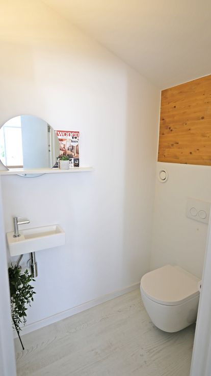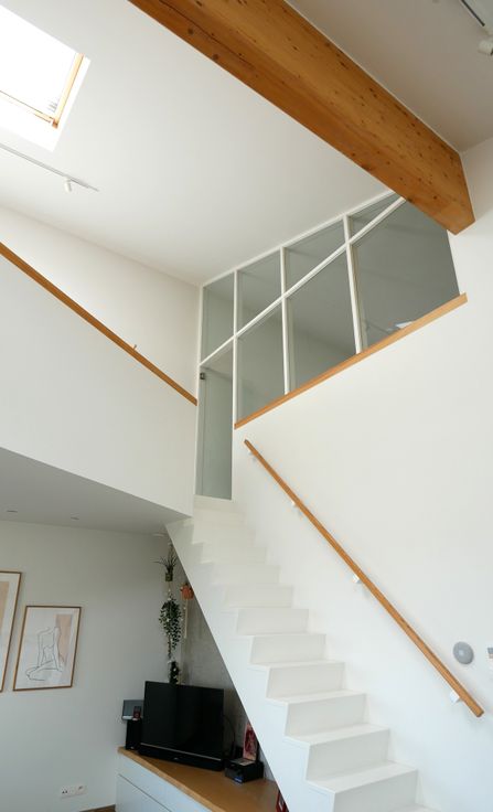 De kamerhoge ramen en dakramen laten het daglicht naar binnen stromen in de leefruimte. De natuurlijke houtafwerking en kwalitatieve materialen dragen bij aan een ruim & hedendaags gevoel.