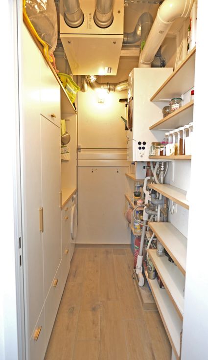 Er is een volledig ingerichte kwalitatieve keuken met energiezuinige toestellen van Novy (inductie/dampkap, oven, combi-microgolf, koelkast) en composiet werkblad. Aansluitend is er een berging met ingebouwde diepvries, en tevens veel bergruimte en legplanken.