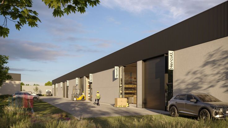 De loods maakt deel uit van het gloednieuwe KMO-project "Bacchus" bestaande uit 12 KMO-units met opp. van 144 m² tot 185 m² (UITBREIDBAAR).