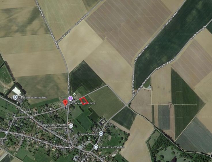 Terrain à bâtir très spacieux dans un décor champêtre, en bordure du village de Waleffes (Faimes). Endroit très calme. Libre de construction. Etude de sol réalisée et disponible sur demande. Raccordement électricité effectué. Exposition arrière: Sud