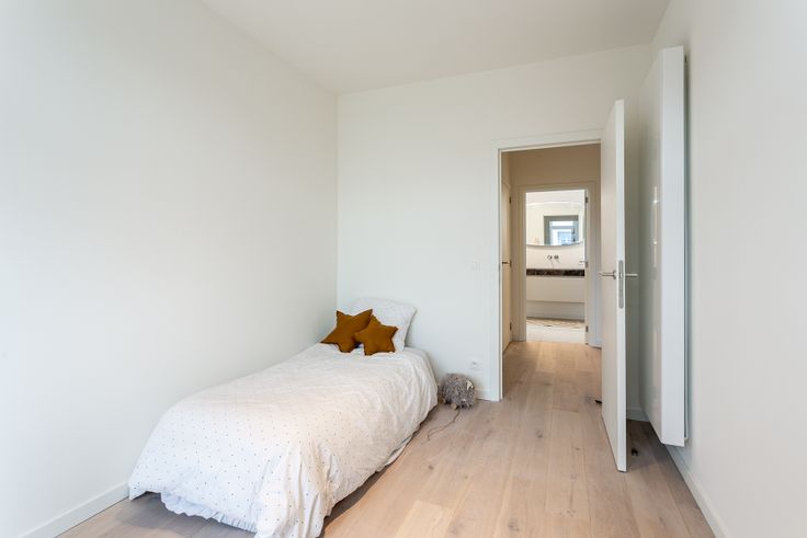 Dit appartement van ca. 75 m² beschikt over twee volwaardige slaapkamers, waardoor het niet alleen ruim aanvoelt, maar ook flexibel in gebruik is. De lichte leefruimte aan de voorzijde wordt gekenmerkt door een warme eiken parketvloer en vloeit naadloos over in de moderne keuken, voorzien van een keramisch werkblad en hoogwaardige Miele-toestellen. Achteraan bevinden zich de rustige slaapvertrekken en een elegante badkamer met een stenen spoeltafel en een ruime inloopdouche. Het compacte maar gezellige terras van 3 m² biedt een aangename plek om te genieten van een kop koffie of een goed boek.
