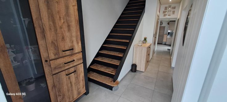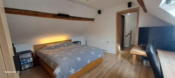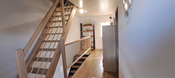 Voici quelques lignes sur son agencement: hall d'entrée, wc indépendant avec accès à la cave, agréable séjour avec vue sur le jardin, cuisine équipée avec accès à la buanderie. Au 1er étage, hall de nuit, une chambre de 13m2, salle de bain : toilette, douche et possibilité d'y mettre une baignoire. Au deuxième étage, hall de nuit avec penderie déservant sur un petit grenier et la seconde chambre de 17m2. Le tout sur un très beau jardin arboré, sans vis-à-vis et cloturé en 1m50 (abri de jardin au milieu de celui-ci), terrasse couverte et carrelée, parking 2 voitures à l'avant + servitude sur le côté de la maison.