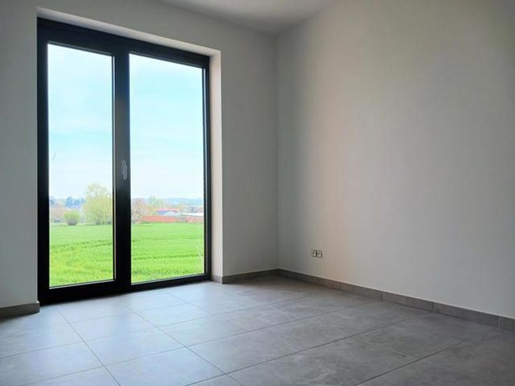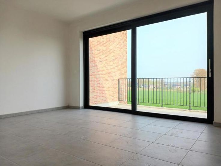 Topo-Immo biedt u dit nieuwbouwappartement, gelegen op de eerste verdieping van een klein gebouw. De indeling is als volgt: Via de inkomhal, voorzien van apart toilet op regenwater, bereik je de woonkamer met open ingerichte keuken. Het schuifraam biedt je toegang tot het terras (12m²). Verder beschikt het appartement nog over een slaapkamer en een kinderkamer/bureau, een badkamer met douche en een praktische berging. Het zicht is adembenemend; Hier ben je duidelijk in het prachtige Pajottenland! Staanplaats inbegrepen. EPB 24! (zonnepanelen + warmtepomp). Waterverzachter aanwezig. 100 euro gemeenschappelijke lasten.