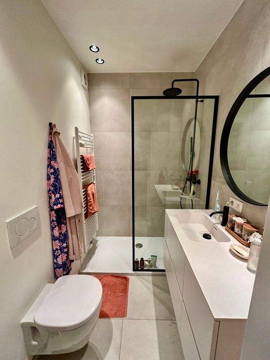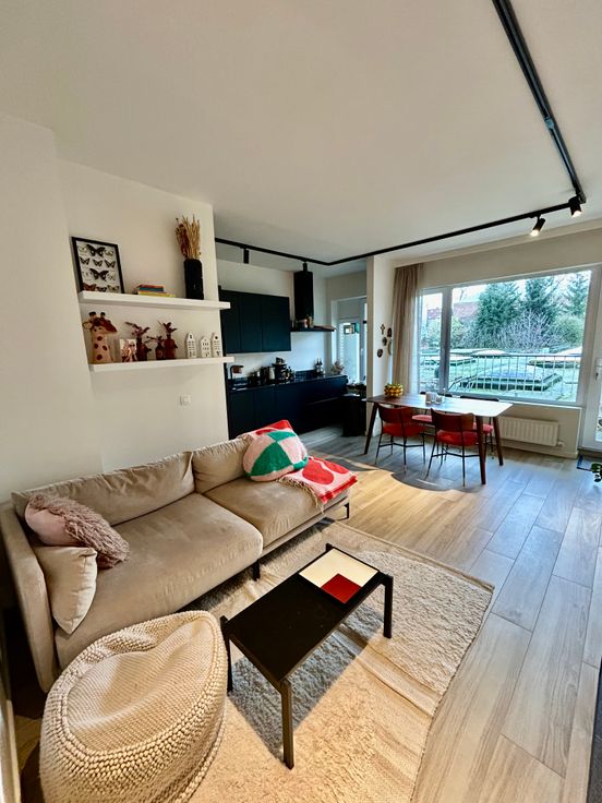 Indeling: inkomhal met opbergruimte/dressing en badkamer met inloopdouche, lavabo en WC. Zonnige leefruimte met open keuken voorzien van vaatwasser, ijskast met vriesvak en combi-oven alsook een ingebouwde kast met was- en droogmachine.