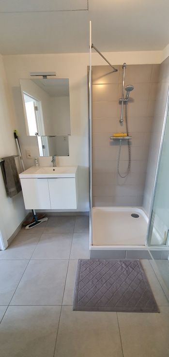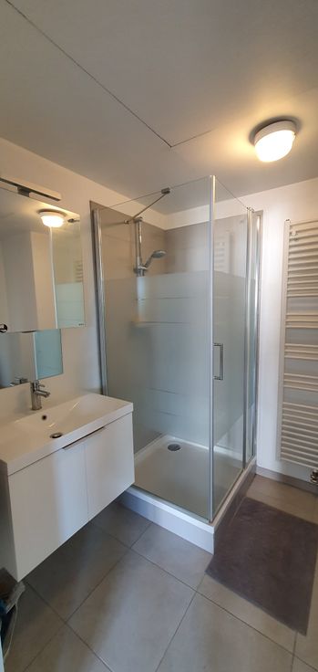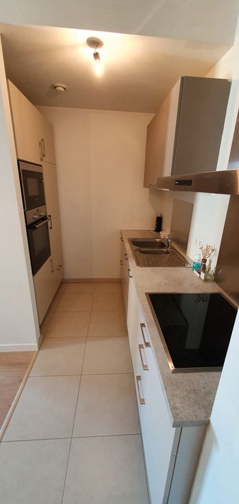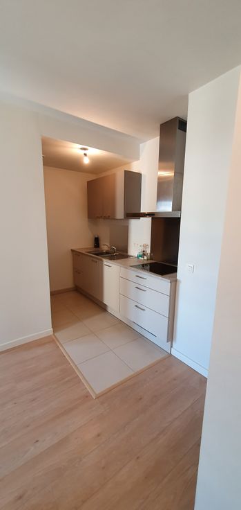 Deze prachtige studio bestaat uit: inkomhal - badkamer (douche, lavabo en toilet) - volledig ingerichte, half-open keuken (moderne meubels, dubbele inox spoelbak, keramische kookplaat, dampkap, geïntegreerde microgolf- en elektrische oven, geïntegreerde koelkast, geïntegreerde vaatwasmachine) - ruime woon- en eetkamer - video-intercom systeem - dubbele beglazing - individuele elektriciteitsmeter. Energierendement van het gebouw: isolatie ++. De huurprijs bevat ook een kelder van ca. 8 m²en een gemeenschappelijke fietsenstalling in ondergrondse parkeergarage.