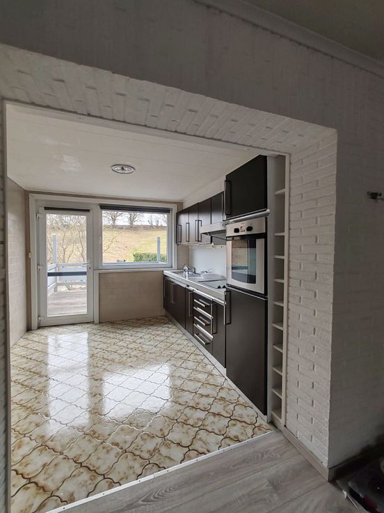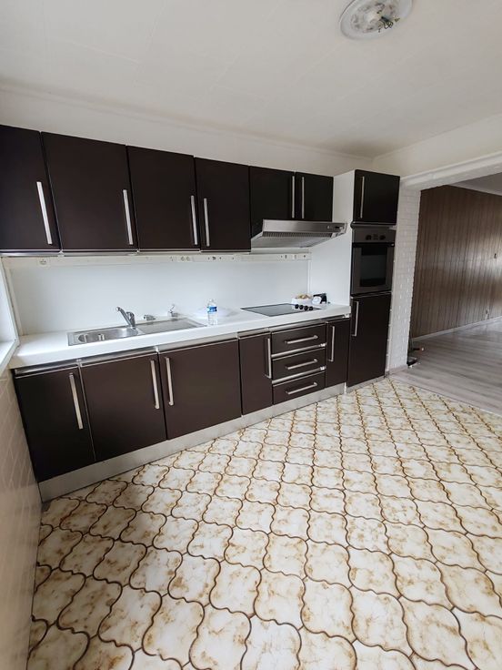 Au 1er: une cuisine semi équipée avec frigo, four, taque, hotte aspirante.