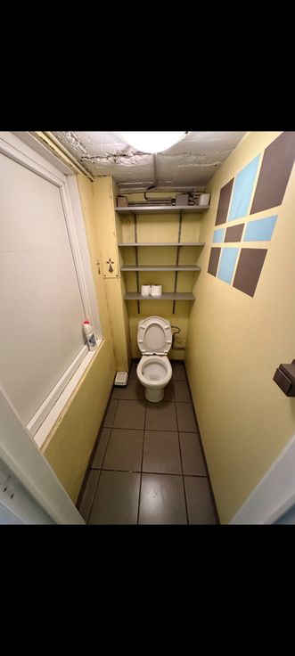 un espace de rangement avec évier, un WC et une remise.