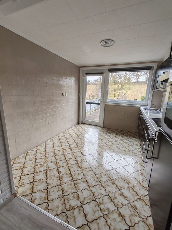 Un living et un salon avec poêle à pellet, chauffant l'ensemble de l'habitation.