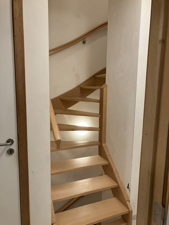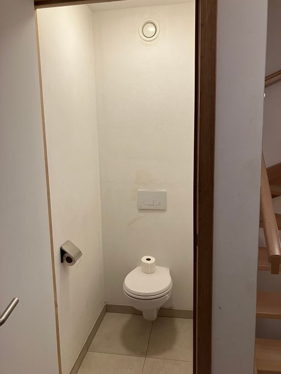 Vanuit de inkomhal heeft u toegang tot een eerste toilet en de lichtrijke woonkamer. Aansluitend is er de ruime, moderne, nieuw geïnstalleerde keuken met keukeneiland en berging/wasplaats. Op de eerste verdieping vind u drie slaapkamers, toilet en een badkamer ingericht met ligbad en aparte douche. Op de tweede verdieping zijn eveneens twee slaapkamers afgewerkt, voorzien van velux, en een berging met een klasse D ventilatiesysteem (warme uitgaande lucht wordt hergebruikt om inkomende lucht op te warmen = maximaal rendement). Alle slaapkamers zijn voorzien van quickstep laminaat.