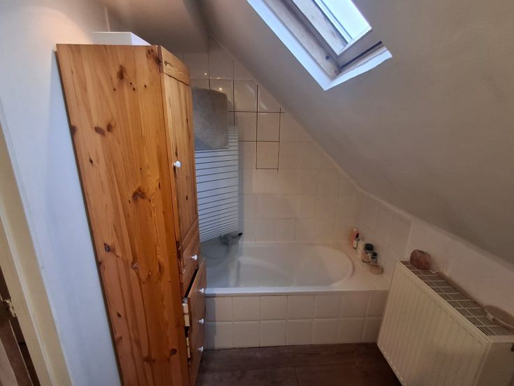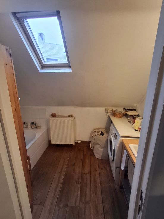 Gezellig duplex dakappartement te huur. Het betreft een appartement op de derde verdieping en in het dak. Grote keuken, slaapkamer , hall met apart toilet, badkamer met ligbad. In het dak is de living. Via de traphal kan je op het terras met vanaf de middag zon.