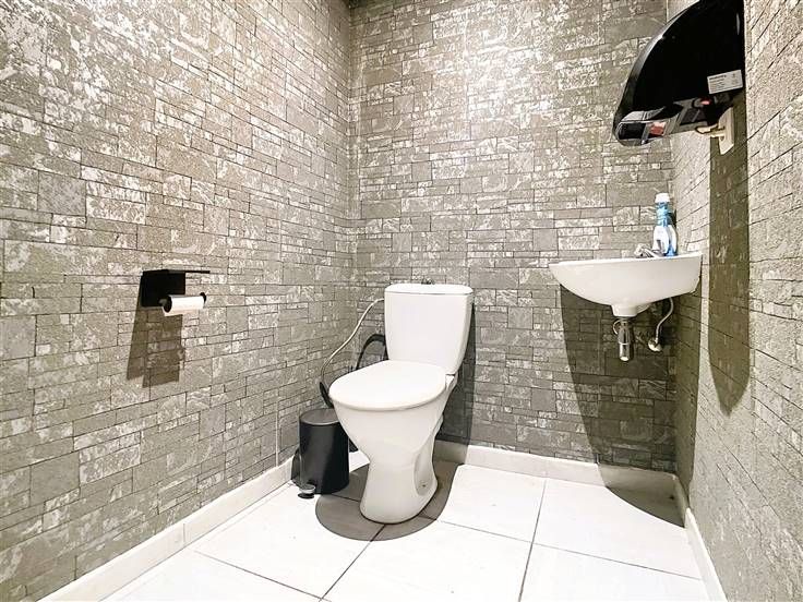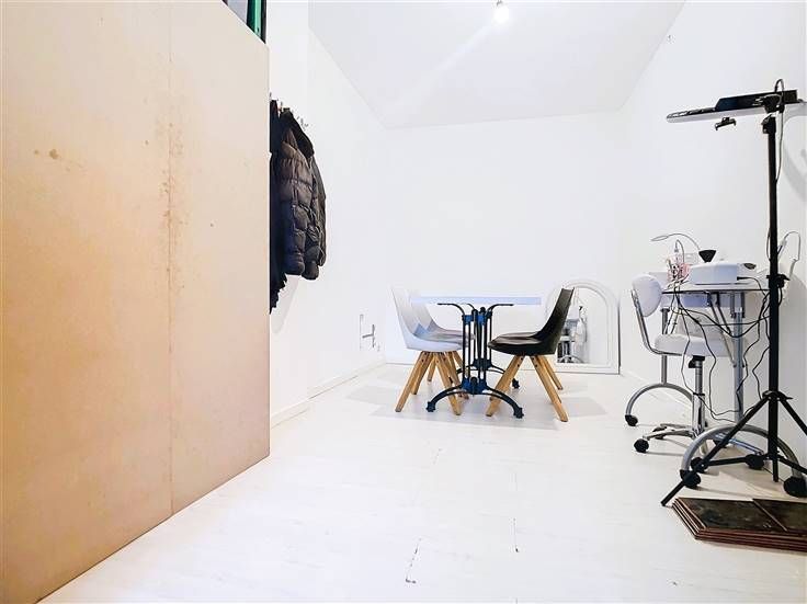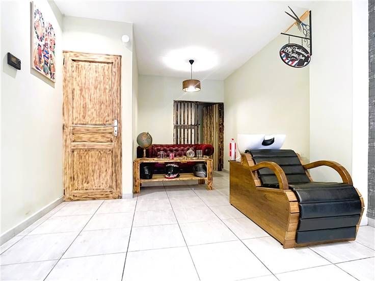Au rez-de-chaussée, vous trouverez une surface d'exploitation commerciale d'environ 38 m². En complément de cet espace commercial, il y a une cuisine avec accès pour une machine à laver, ainsi qu'un WC séparé. (Surface totale 60m²)