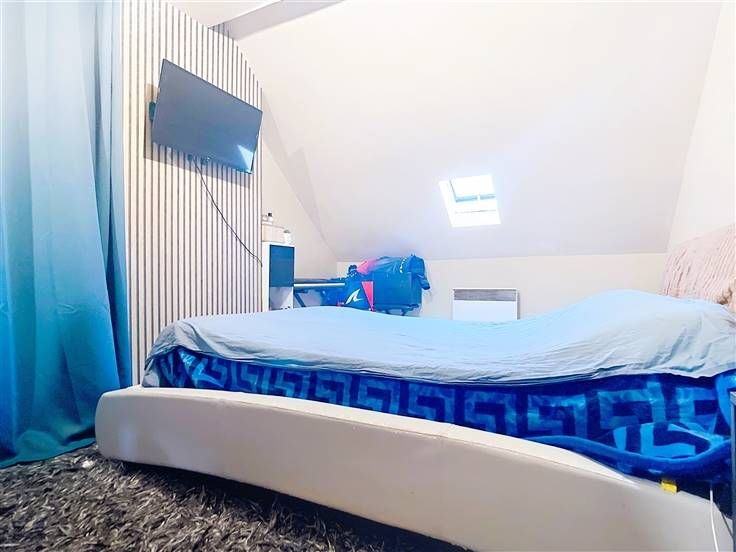 À l'étage, vous découvrirez un salon, une cuisine équipée avec coin repas, ainsi qu'une chambre avec salle de douche, WC, et un accès supplémentaire pour une machine à laver.