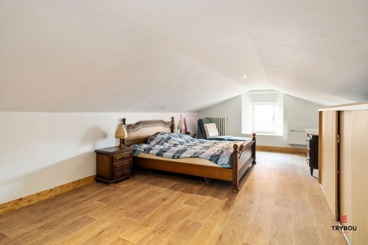 Lichtrijke, alleenstaande woning gelegen op ruim perceel van 1566 m² De woning is ingedeeld als volgt Inkomhal - ruime leefruimte met zit -en eethoek - open ingerichte keuken met toegang tot achtertuin - hal met toegang tot 3 ruime slaapkamers - badkamer met toilet, douche en lavabomeubel - kelder met 1 autostaanplaats, bergruimte en CV-lokaal. Verdiep: 1 grote slaapkamer met airco - slaapkamer / bergkamer. Ruime tuin met terras en tuinhuis Regenwaterput aanwezig Centrale verwarming op stookolie - radiatoren. Ideaal voor dierenliefhebbers. Interesse in dit pand? Contacteer ons snel! 📞 051/57.54.61 📧 immo@grouptrybou.be