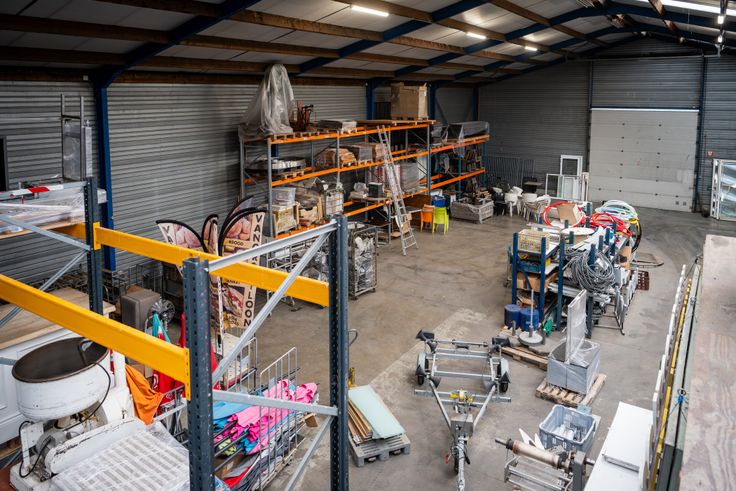 Mogelijkheid tot huren van stockeerplaatsen: 100m2 of 50 m2 aan de prijs van 3,50 EURO/m2/maand