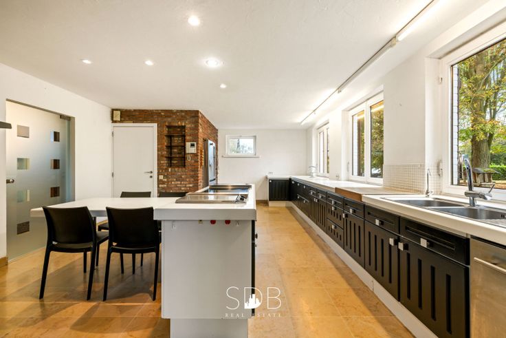 Langs een invalsweg naar Ninove, provincie Oost-Vlaanderen, treffen we dit schitterend gelegen landhuis met tuin aan. Via ,de imposante oprijlaan, afgelijnd door inheemse boomsoorten ontdek je dit juweeltje. We betreden de woning via de ruime , centrale, inkomhal die toegang biedt tot de lichtrijke, grote , uitzonderlijke hoge woon-eetkamer. De grote glaspartijen laten een maximaal aan licht, deze landelijke ruimtes belichten. Een authentieke open haard geeft deze leefruimte nog een extra charme. Aanpalend tref je de volledig geïnstalleerde, zuidgerichte leefkeuken aan. Verder op het glvs. een volledig gerenoveerde 1ste slaapkamer met dressing, vrijstaand bad, inloopdouche en sauna.. De villa is, bijna, volledig onderkelderd met tal van ruimtes zoals, mancave, wijnkelder, technische ruimte, etc... Op de 1ste verdieping: extra zitruimte , nachthal, 3 slaapkamers met ingemaakte kasten en een badkamer. De vernieuwde terrassen met jacuzzi en de fraaie aangelegde tuin met vijver nodigen uit, om volledig tot rust te komen . Aanpalend aan dit gebouw treffen we ook nog een dubbele garage aan , met een afzonderlijk bureel. Extra is er ook een volledig ingerichte studio aanwezig. Grootste troeven: * verwarming via geothermie * eigen waterwinning * Bourgondische ,natuurstenen vloeren * vloerverwarming * extra warmtepompen(airco's) * asbestveilig Voor meer info en/of bezoek : www.sdb.realestate
