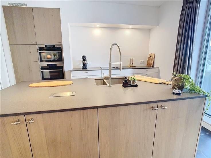 Keuken: kookeiland, BORA kookplaat, frigo en vaatwasser SIEMENS, twee AEG ovens.