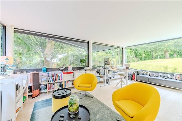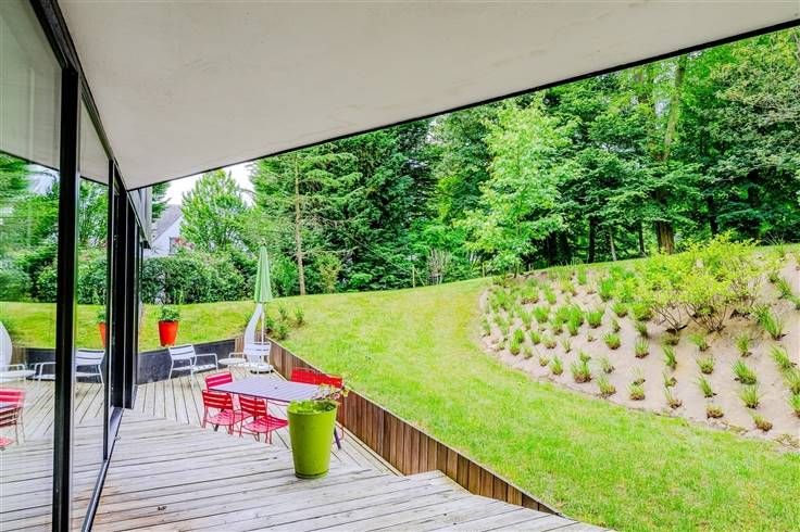 UCCLE (Centre - maison communale), op een steenworp afstand van winkels, transportverbindingen en scholen (plaatselijke school Val Fleury, Collège Saint-Pierre, Europese School of Lycée Français), in een rustige, ongerepte straat - prachtig onder architectuur gebouwd huis (Vanden Eeckhoudt-Creyf), voltooid in 2014, van ± 486 m2 en gelegen op 18,67 are grond.