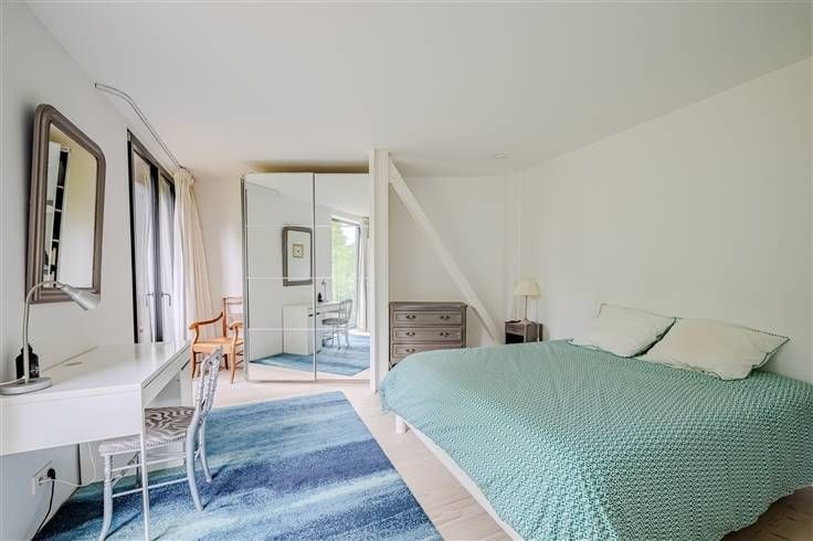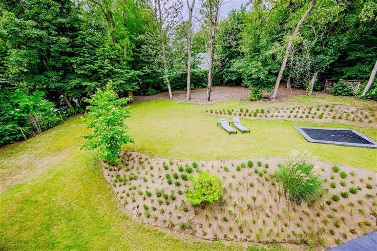 Het souterrain (155m2), gedeeltelijk ingegraven, bevat de dubbele garage, veel bergruimte, een wasruimte, een opslagruimte, een wijnkelder met airconditioning en de entreehal met logeerkamer en toilet. Het geeft toegang tot een grote, lichte leefruimte (111 m2) met een volledig uitgeruste Gaggenau keuken, een eetkamer, een eerste woonkamer met een dubbele open haard en een tv/studieruimte met opslagruimte. Op de tweede verdieping (134 m2) bevindt zich het kindergedeelte met 3 slaapkamers, een badkamer (douche en bad) en een wc. Twee van de slaapkamers, met uitzonderlijk hoge plafonds, zijn uitgerust met mezzanines (bedden van 160 cm en stahoogte) en opbergmeubels, allemaal op maat gemaakt in me
