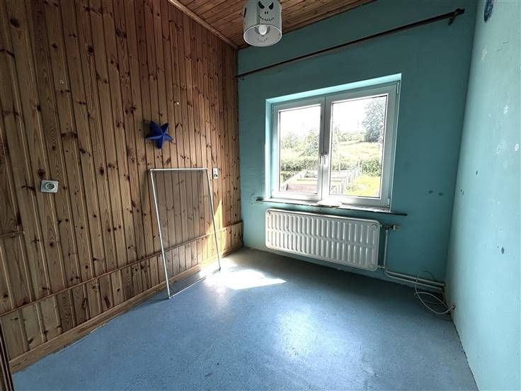 1er étage : hall (+/-2 m²), spacieux séjour (+/-35 m²), cuisine équipée (+/-12 m², hotte, lave-vaisselle, meubles évier et de rangement), arrière cuisine/possibilité buanderie (+/-9 m²) donnant accès à la terrasse et au jardin, bureau (+/-6,5 m²), salle de bains (+/-4 m², baignoire/douche, lavabo, w.c.), 1 débarras (+/-3 m², avec emplacement machine).