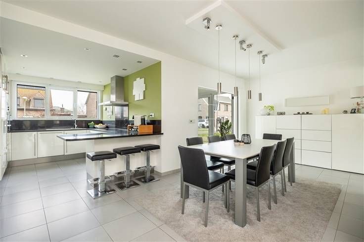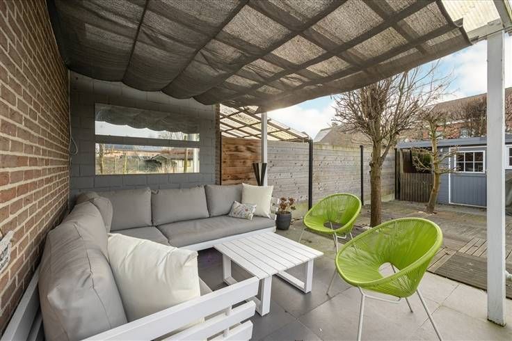 In een rustige doodlopende straat, vind je dit instapklare huis. Op de oprit kan je 3 auto’s kwijt en je hebt een garage van 20 m². De voordeur bevindt zich aan de zijkant, waar je binnenkomt in de ruime inkomhal, met een gastentoilet en aparte berging die dient als vestiaire. Aan de straatzijde zit de open, u-vormige keuken met de eetkamer ernaast, inclusief een natuurstenen toog. Je hebt hier een inductievuur, dampkap, dubbele inox spoelbak, oven, microgolfoven, koelkast, vaatwasser en veel kastruimte. De leefruimte achteraan wordt van de eetkamer gescheiden door een slimme wand met open haard erin verwerkt. Een deel van de vloer is verzorgde laminaat, waardoor je hier aan de haard een extra warm gevoel hebt. Achteraan links leidt een deur naar de aanpalende garage. De kamerbrede schuiframen zorgen voor veel licht en zicht op de verzorgde tuin, met een betegeld terras, overdekt terras en groot stuk gazon. De trap in de hal leidt naar de eerste verdieping, waar je drie ruime kamers hebt met een laminaatvloer en rolluiken. Je vindt hier ook een betegelde, gerenoveerde badkamer met een XL inloopdouche, dubbele lavabo met spiegel, onderkasten én twee verticale hangkasten. Verder heb je nog een apart toilet, een berging met aansluiting voor was en droog en een dressing. Onder het dak heb je een polyvalente zolderverdieping, waar je nu 2 slaapkamers en een multifunctionele ruimte hebt. Meer info: https://www.immovasta.be/panden/gegevens/13788/