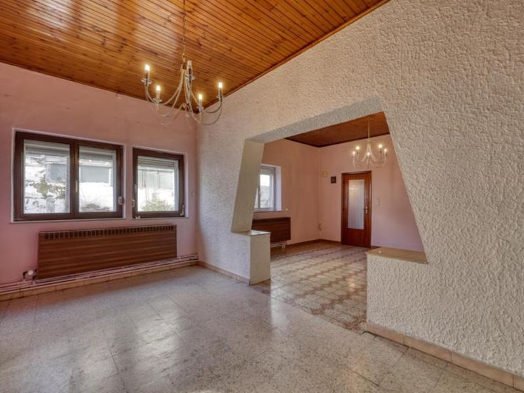 Sous-sol : couloir, et deux caves Rez-de-chaussée : véranda (3.74mx2.86m), pièce annexe (2.78mx2.95m), salle de douche, buanderie (3.08mx1.58m), cuisine équipée (2.88mx3.08m), salle à manger (2.84mx4.76m), salon (3.83mx4.76m), couloir et garage (4.58mx2.98m) Premier étage : couloir, WC, trois chambres de 3.83mx2.31m, 3.83mx2.35m, 3.63mx3.88m (avec armoire encastrée) Plus deuxième garage.
