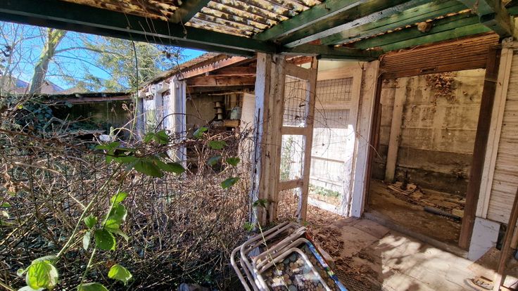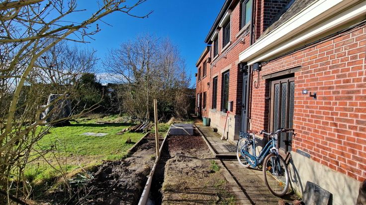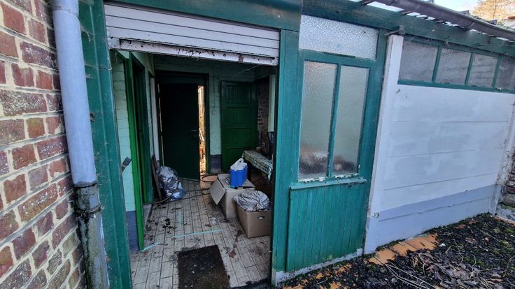 Leuke tuin met nog enkele bergingen.