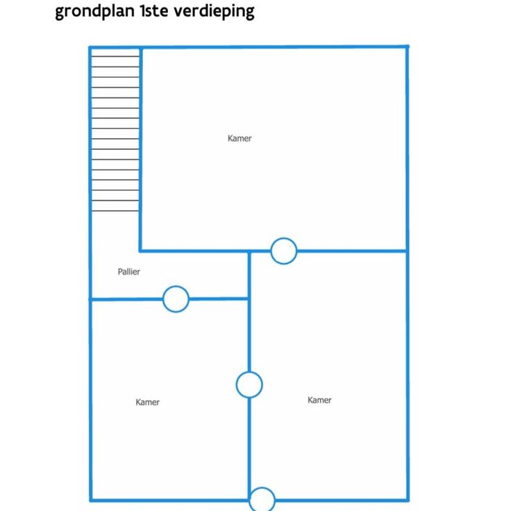 - Eerste verdieping: overloop en 3 slaapkamers waarvan 2 normale en 1 kleinere slaapkamer.