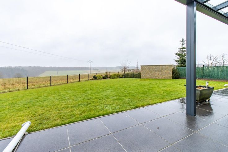 Deze leuke woning ligt op een omheind terrein van 6,25 are. Het werd gebouwd in 2014 en geniet van een groot terras met een ruime pergola en een adembenemend zicht op het omliggende platteland. Prachtig aangelegd terrein. Uitstekende energieprestaties (EPC B). Automatische garagepoort. Goedgekeurde elektrische installatie (certificaat geldig tot 2039). Gelijkvloers : inkomhal met toilet, L-vormige woonplaats met uitgeruste keuken en raamdeuren naar het terras (+ houtkachel), garage met toegang naar de tuin. Verdieping : nachthal, 3 kamers waarvan één masterbedroom, badkamer (wastafel, douche en toilet).