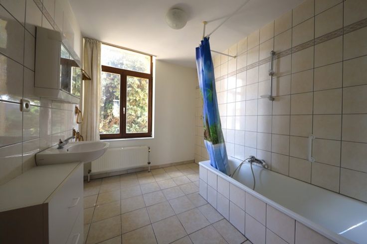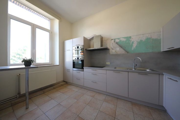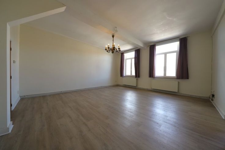 Appartement in centrum op de eerste verdieping zonder lift, in een rustig gebouw met voor- en achteraan ingang. Men heeft er een woonkamer met zicht op de markt, een aparte keuken (onlangs nieuw geplaats, nog af te werken muurbekleding). Nachthal, toilet apart. Slaapkamer achteraan, badkamer met ligbad en lavabo. Er is een koer achteraan gemeenschappelijk, een fietsenstalling. Geen terras, geen berging, geen kelder, geen staanplaats. Lasten: 15€ per maand.