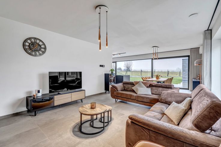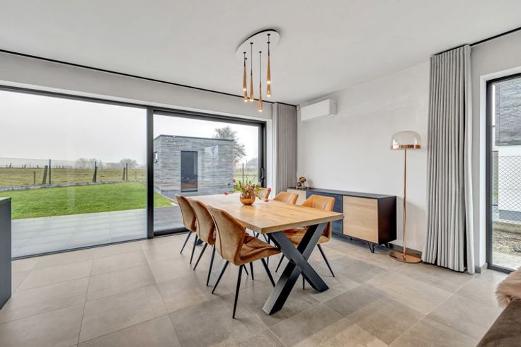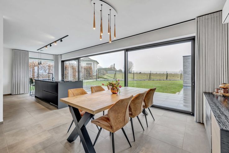 Voor meer info of een bezoek, bel 054 69 39 34 - UNIEKE AANBIEDING - Topo-Immo biedt met trots deze strategisch gelegen villa aan. De uiterst energetische woning dateert van 2022 en verkeert dus in nieuwstaat. Let vooral op het unieke ontwerp en de charme die deze parel met zijn hoogwaardige afwerking te bieden heeft. Winkels, scholen en openbaar vervoer bevinden zich op een steenworp alsook de verbindingsweg naar Aalst, Brakel, Brussel, Halle en Geraardsbergen. Het gelijkvloers bestaat uit een riante inkomhal en toilet. Via de prachtige glazen deur begeeft men zich naar de woonkamer die beschikt over een salon en eetplaats. Aansluitend heeft men hier een fantastische keuken die afgewerkt is met kwaliteitsmaterialen en die tevens een prachtig uitzicht biedt op de tuin en de achtergelegen weidelanden. Verder beschikt men over een zeer ruime berg/wasruimte met aangrenzend een ruime garage. Het verdiep omvat een ruime nachthal, vier slaapkamers waarvan één gebruikt wordt als dressing, toilet en een ruime badkamer die tevens hoogwaardig afgewerkt is. Verder beschikt men over een ruime oprit die plaats biedt aan makkelijk 4 wagens, een aangelegde voortuin, prachtig terras waar men volledig tot rust komt, een tuin met uniek uitzicht op de achterliggende weidelanden, een gemetselde tuinberging met achterliggend een groentetuin. Vloerverwarming op aardgas - Buitenschrijnwerk in aluminium met dubbele beglazing - Regenwaterput van 10.000 l aanwezig - ZEER LAAG E-peil - Elektriciteit co