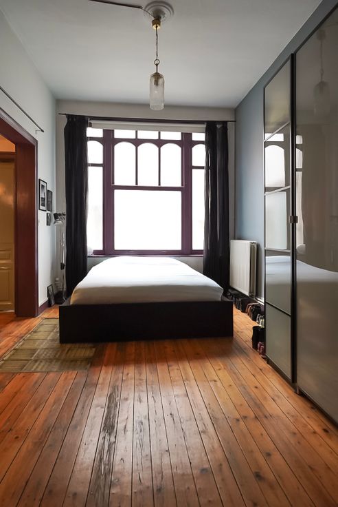 Dit prachtige appartement is ondergebracht in de voormalige "pronkruimte" van het herenhuis, waarin diverse authentieke elementen bewaard zijn gebleven (lambriseringen, schrijnwerk, schouw,...). Het appartement heeft een loftindeling: Living-eetplaats-keuken-slaapruimte vloeien in elkaar. De badkamer en de WC zijn afzonderlijk (ook aansluiting voor wasmachine is aanwezig).