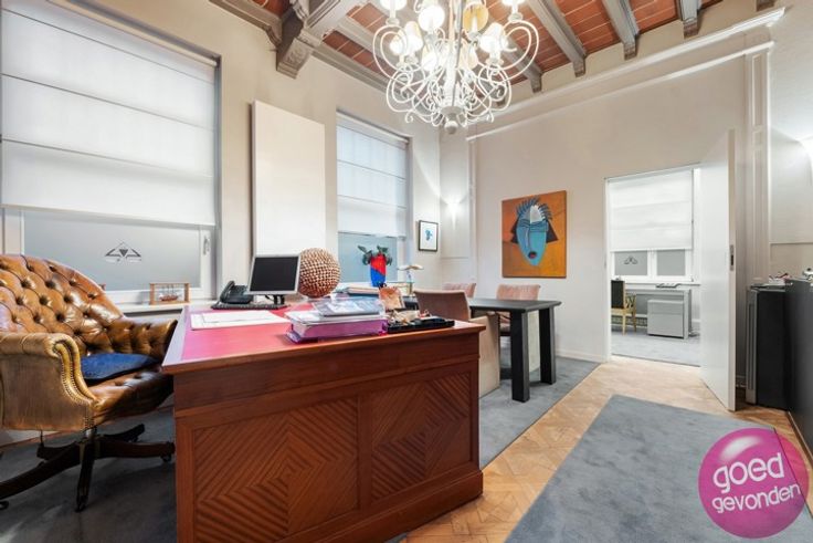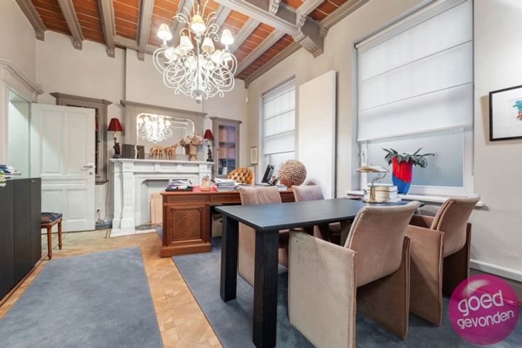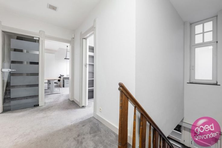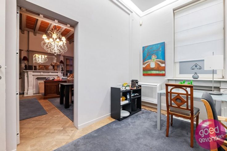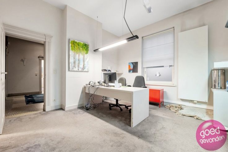 PRACHTIG HERENHUIS UIT INTERBELLUM rustig gelegen in het hart van de stad, momenteel ingericht als kantoor maar zeer geschikt als herenwoning met potentieel 7 tot 8 slk, meerdere badkamers, royale leefkeuken aan terras en tuin. GERENOVEERD in 2008. Wat betreft elektriciteitswerken, waterleidingen, afvoeren, verwarmingsinstallatie, ramen, deuren, isolatie van daken en muurspouwen hoeft u zich geen zorgen meer te maken, u moet enkel nog keuken en badkamer(s) voorzien. GEEN RENOVATIEPLICHT EPC score (label B). NTERBELLUM - In de lijn van de verwachtingen vindt u hier de sfeer terug die getuigt van de eerste helft van de 20ste eeuw met vele authentieke elementen. Prachtige mozaïek- en parketvloeren, sierschouwen, hoge plafonds en een uitzonderlijk mooie wisselwerking tussen de geveldecoratie en de hoogstaand gerenoveerde ramen, deuren en erker. INDELING. Zeer ruime inkomhal met mozaïekvloer + inkomhal loopt door tot deur naar terras en achtertuin + aparte wc + 6 kantoren goed voor een 120 m² potentiële leefruimte + inrit, parking, terras en tuin rondom de woning + hal, 4 kantoren, keuken, vestiaire en toilet op de eerste verdieping + hal, 2 kantoren en 2 archiefruimten op de tweede verdieping + kelder van 50 m², uitstekend verlucht, ideale wijnkelder. Info op 012 744 844 of info@goed-gevonden.be